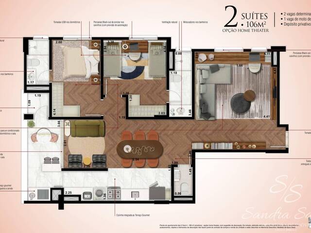 Apartamento de 2 dormitórios, com um deles suíte, Sala e cozinha estilo aberto, Varanda gourmet, Banheiro social, 1 vaga de garagem com opção de box privativo, Área de lazer completa: E-Sports, Espaço body e fitness, Fidzone, Espaço Pet, Fire wine, Sky Pool, Espaço festa e gourmet, Espaço grill, Piscina,